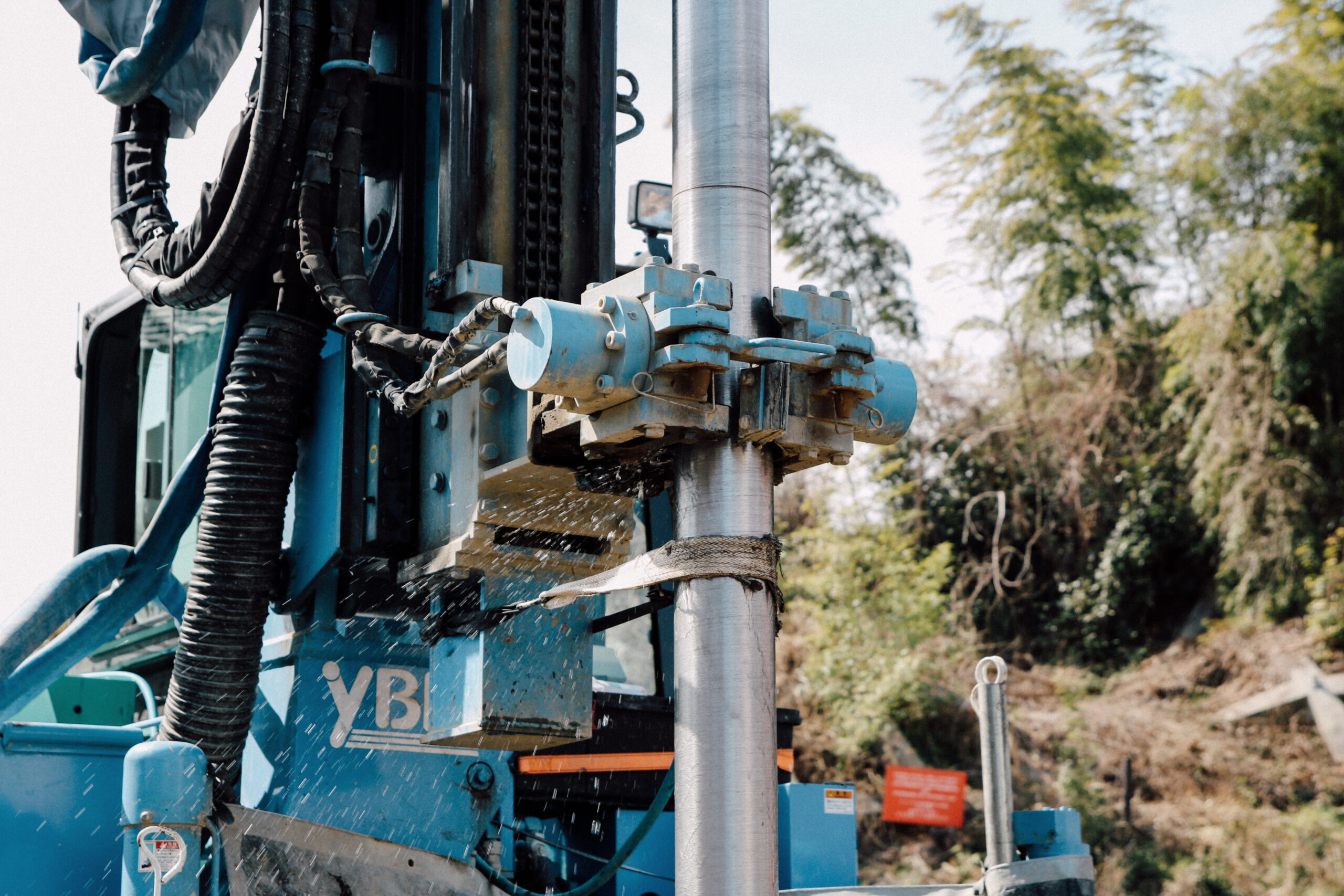 • プレボーリング(先行穿孔)工事:地盤の深部にアクセスする必要がある場合には、プレボーリングによる柱状改良が有効です。この工法では、予め穴をあけ、柱状の土壌を作り出すことで、地盤の強度を高めます。これによって、建物の基礎部分や橋脚の支持部分など、地盤が弱い部分に対して補強することができます。